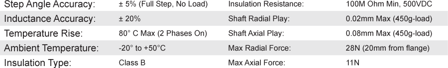 Item Frame Size Bipolar Torque (Nm) Bipolar Current (A) Bipolar Voltage (V) Bipolar Inductance (mH) Rotor Inertia (g-cm²) # of Lead Wires Shaft Length (mm) Weight (kg) Downloads Price (USD) Quantity Discounts More