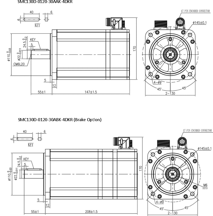 The PKS-FD144S-12 Servo System includes a 1200 Watt SMC130D-0120-30AAK-4DKR Servo Motor or SMC130D-0120-30ABK-4DKR Servo Motor with brake, operated by the FD144S-LB-000 Servo Drive. These packages are ideal and provide easy start-ups, convenience, and performance. The Servo Motors included in these packages provide torque up to 9.5 Nm. The FD144S-LB-000 Servo Drive is designed to switch dynamically among different control methods for more flexible operation and can operate position control mode either with pulse and direction inputs, 8 internal position points, or 8 internal speed points. Each system includes a 5m Motor Power Cable, 5m Encoder Cable and a Communication cable. If purchasing the option with a Brake then a 5m Brake Cable will be included as well.