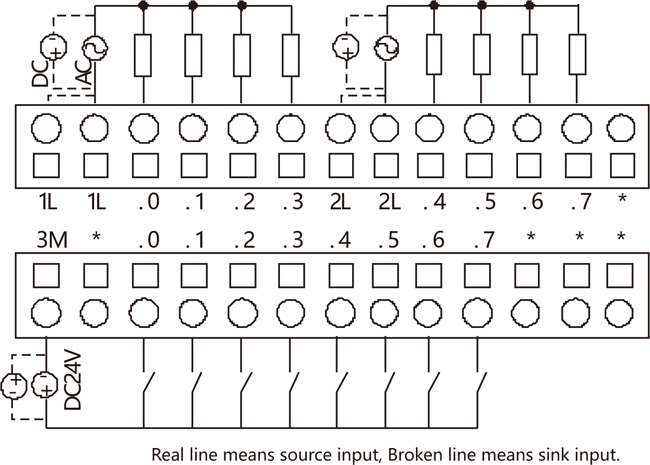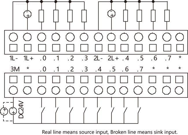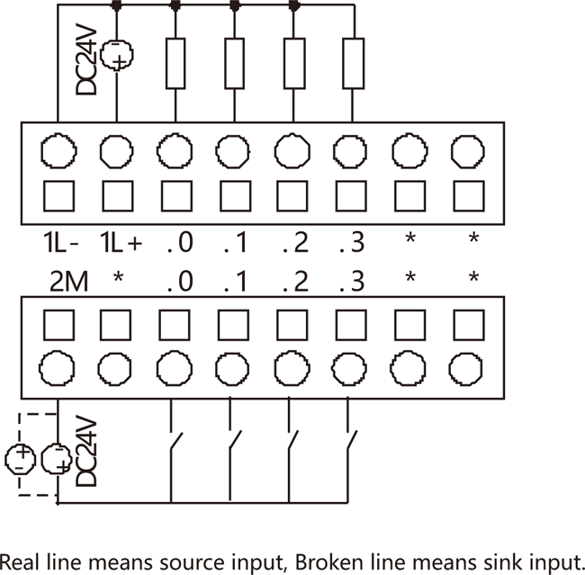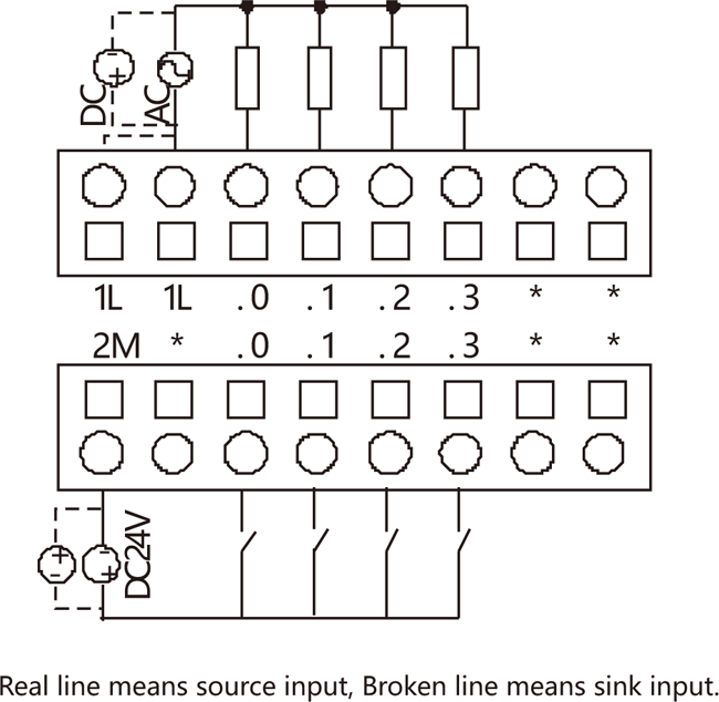 The KNC-PLC-K623 Discrete Input and Output Expansion Modules are offered in Transistor or Relay outputs and sinking or sourcing inputs. These units come with 4 inputs and 4 outputs or 8 inputs and 8 outputs. These units are ideal to expand beyond the onboard inputs and outputs of the KNC-PLC-K6 CPUs, which can handle up to 264 I/O points with a maximum of 14 expansion modules. The inputs are rated for 3.5 mA and can be configured for either sourcing or sinking. The transistor outputs are rated for 500 mA @ 24 VDC and come only in a sourcing configuration. The relay outputs are rated for 2 A @ 30 VDC or 250 VAC, and are great for switching on and off high load devices AC or DC devices, particularly AC or DC motors. The transistor output modules are opto-isolated for unit protection.