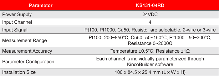 Module 4 kênh đầu vào điện trở nhiệt Thermistor Kinco KS131-04RD (4 RTD, PT100, PT1000, Cu50, R, Modbus slave)