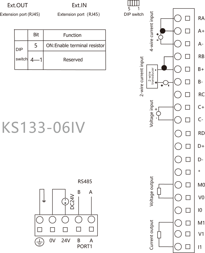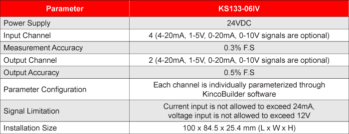 Module 4 kênh đầu vào AI + 2 kênh đầu ra AO Kinco KS133-06IV (DC24V, 4 *AI,2*AO, (4-20mA/1-5V/0-20mA/0-10V), Modbus slave)