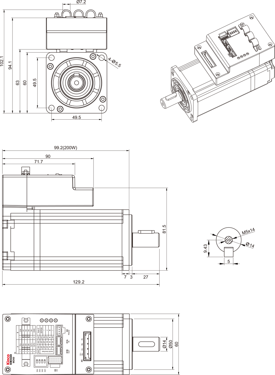 Động cơ Servo DC tích hợp Bộ điều khiển 200W Kinco MD60-020-DMAK-CA-000