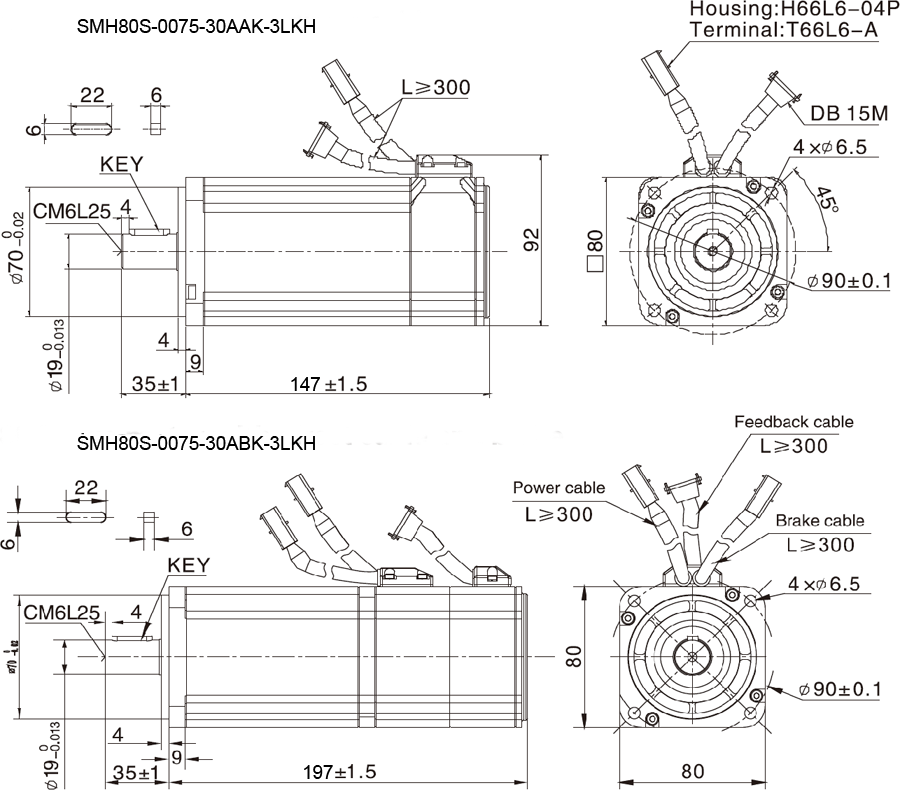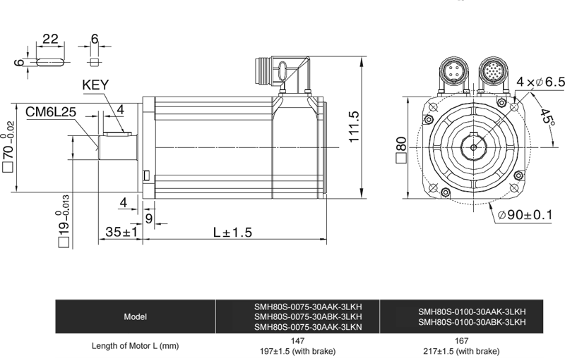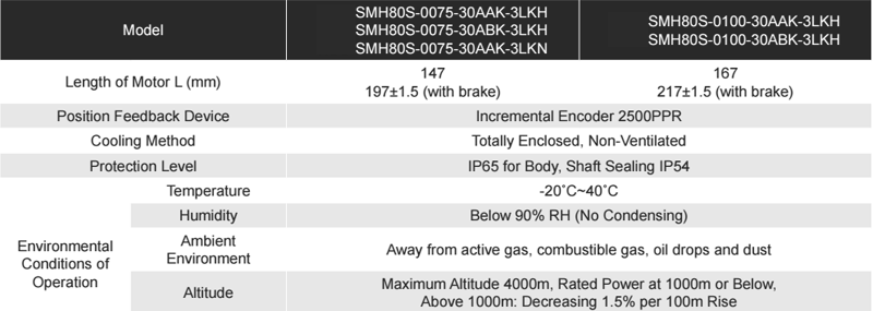 Động cơ AC Servo 750W without brake Kinco SMH80S-0075-30AAK-3LKN