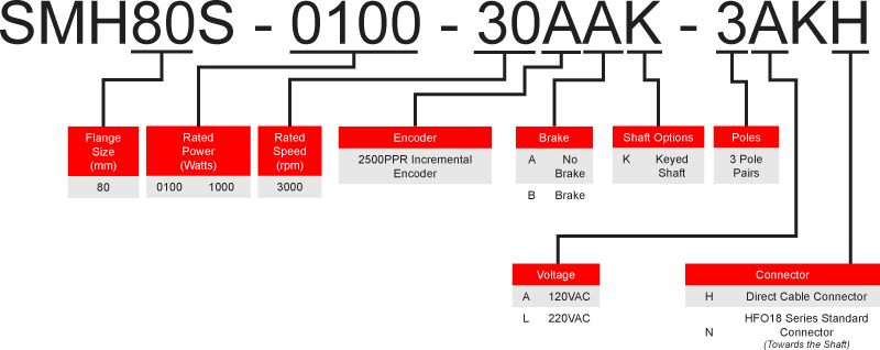 The SMH80S Series AC Motors are a low-cost solution for many motion control applications requiring a low inertia design to maximize torque at high speeds. These motors boast peak torque values up to 1,350 oz-in, provide excellent dynamic response, allow for 3 times the overload capacity, and come equipped with a 2,500 PPR incremental encoder. It is available in an 80mm square flange size, with a brake option.
